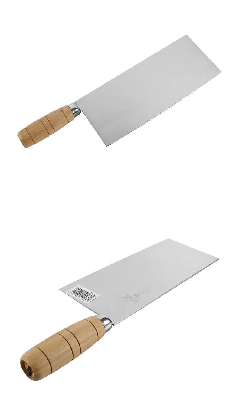 十八子作菜刀专业厨师用,切肉切片刀,三层复合钢。木把手柄,刀刃锋利。厨师的好帮手。适合大小饭店后厨,家用。